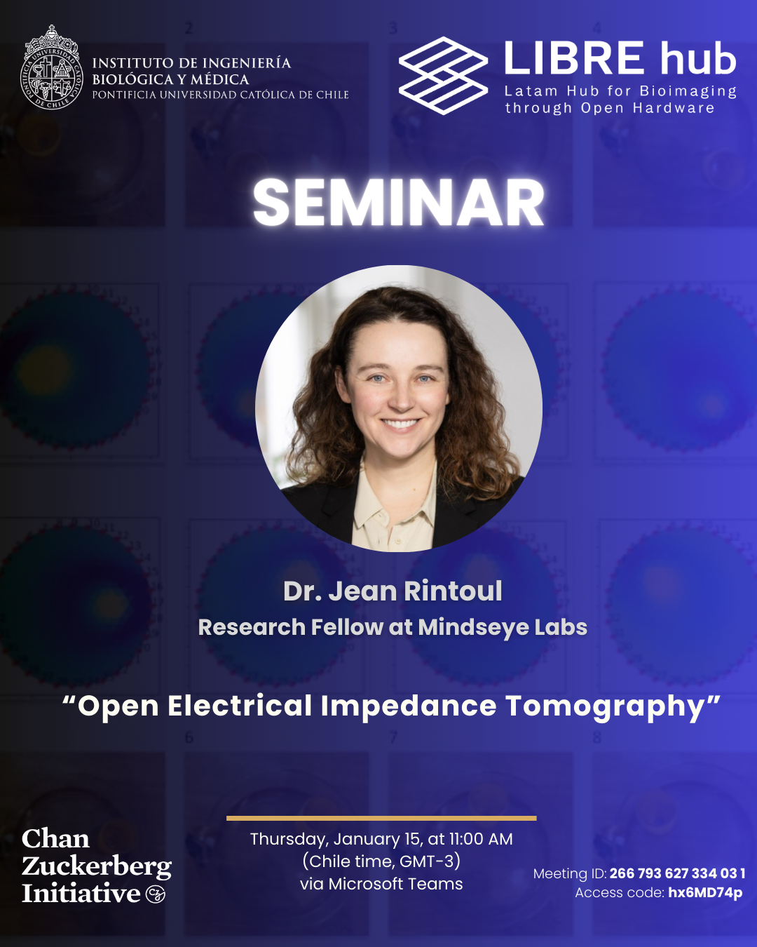 Insights into BioImaging Innovation We are pleased to invite you to the next LIBRE Hub seminars, which will take place on January 17th at 12:30 PM (GMT-3, Chile time) via...